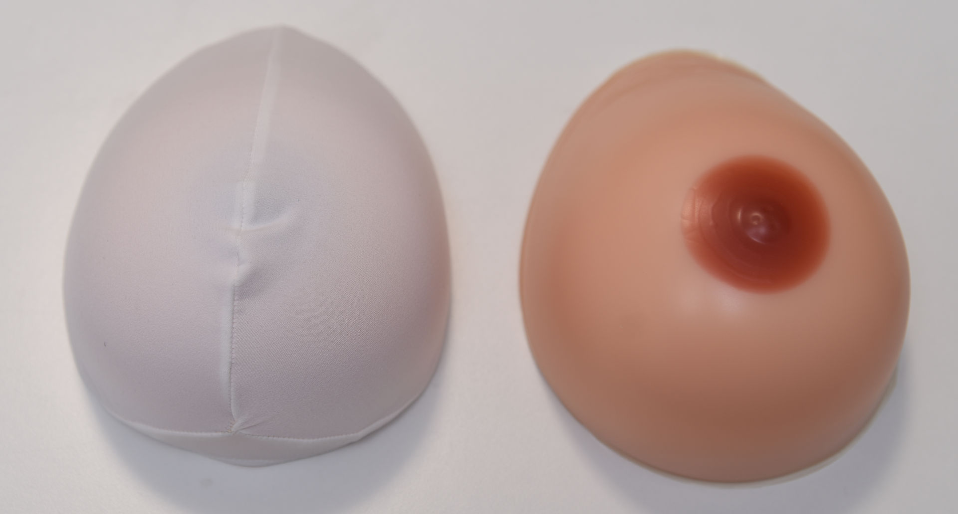 ↑(写真は開発中のもので、実際には専用インナー生地と同じ素材を使用します)専用生地をご指定いただいた場合、Cカップ~Gカップ対応の「バストカバー」が付属します。シリコンバストやウレタンバストにかぶせることで、インナー生地との色調が統一されます。