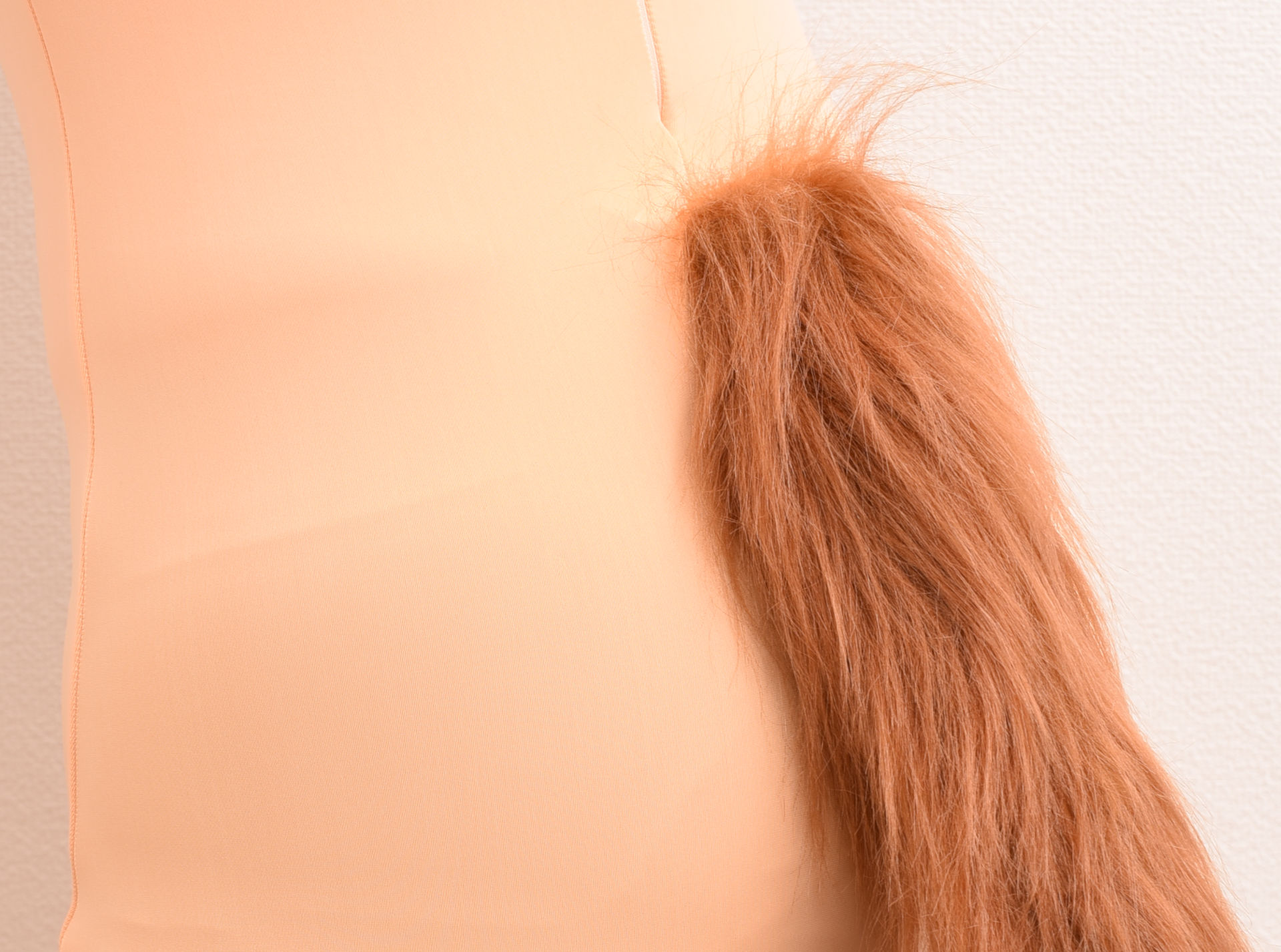 単純に取り付けるだけならば簡単なのですが、着ぐるみのキャラクターによっては、「スカートの上」だったり「スカートの中」だったり「ショートパンツの上」だったりと、微妙に位置が異なります。またスカートによっても締める高さが異なるため、こちらで適当に位置をきめようものならば「〇〇というキャラクターだとしっぽの位置が合ってない」というお客様が満足されない結果になり得るわけです。