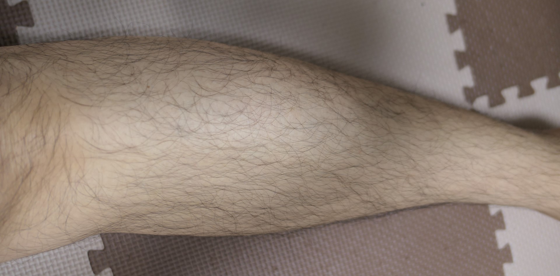 다른 생지에 비해 약간 얇습니다. 대략적인 기준으로, 아래 사진의 다리털 농도가 doll 생지가 숨길 수 있는 한계점입니다. 이보다 더 많은 털이 있는 경우 다른 생지를 추천합니다.